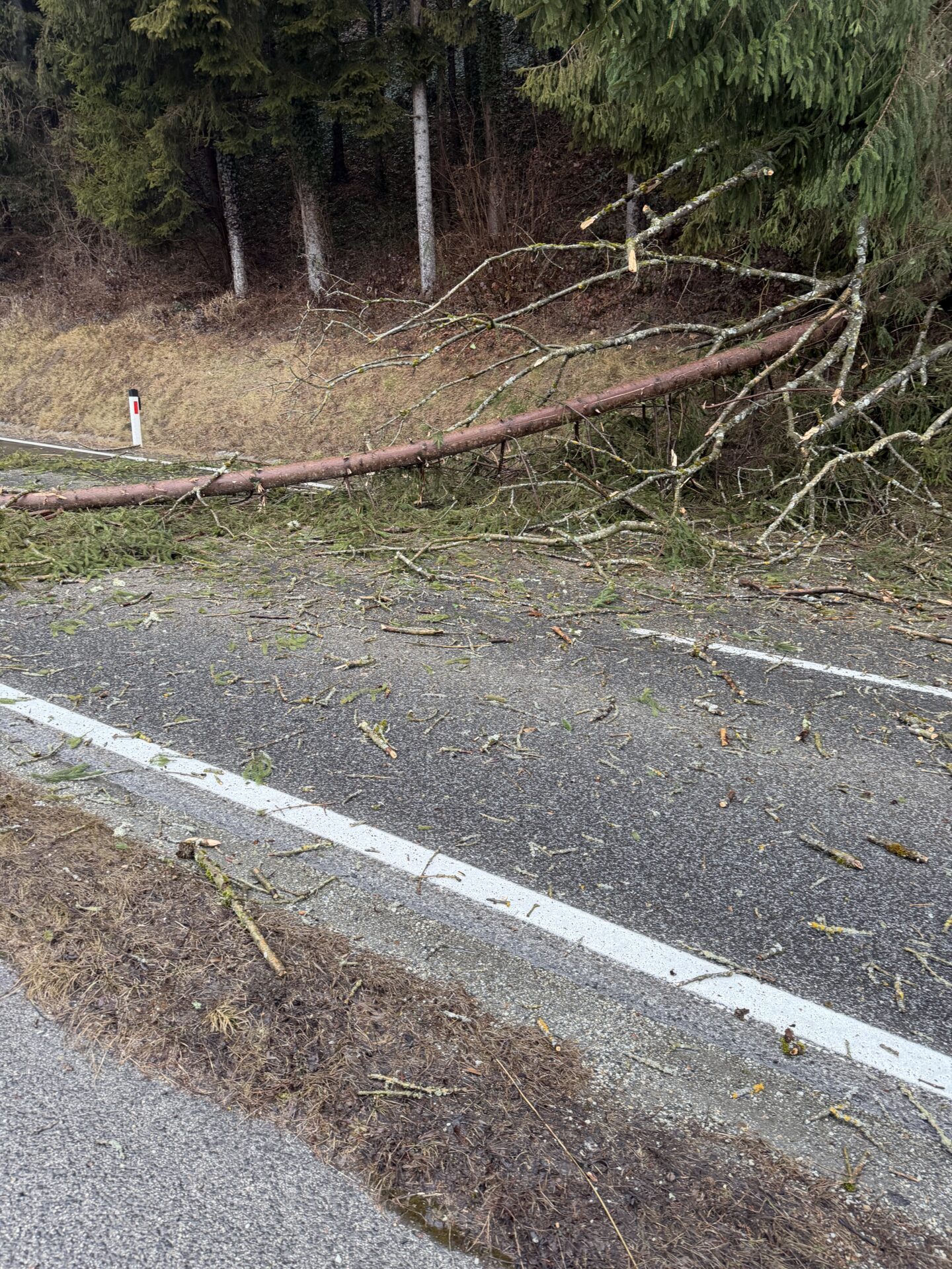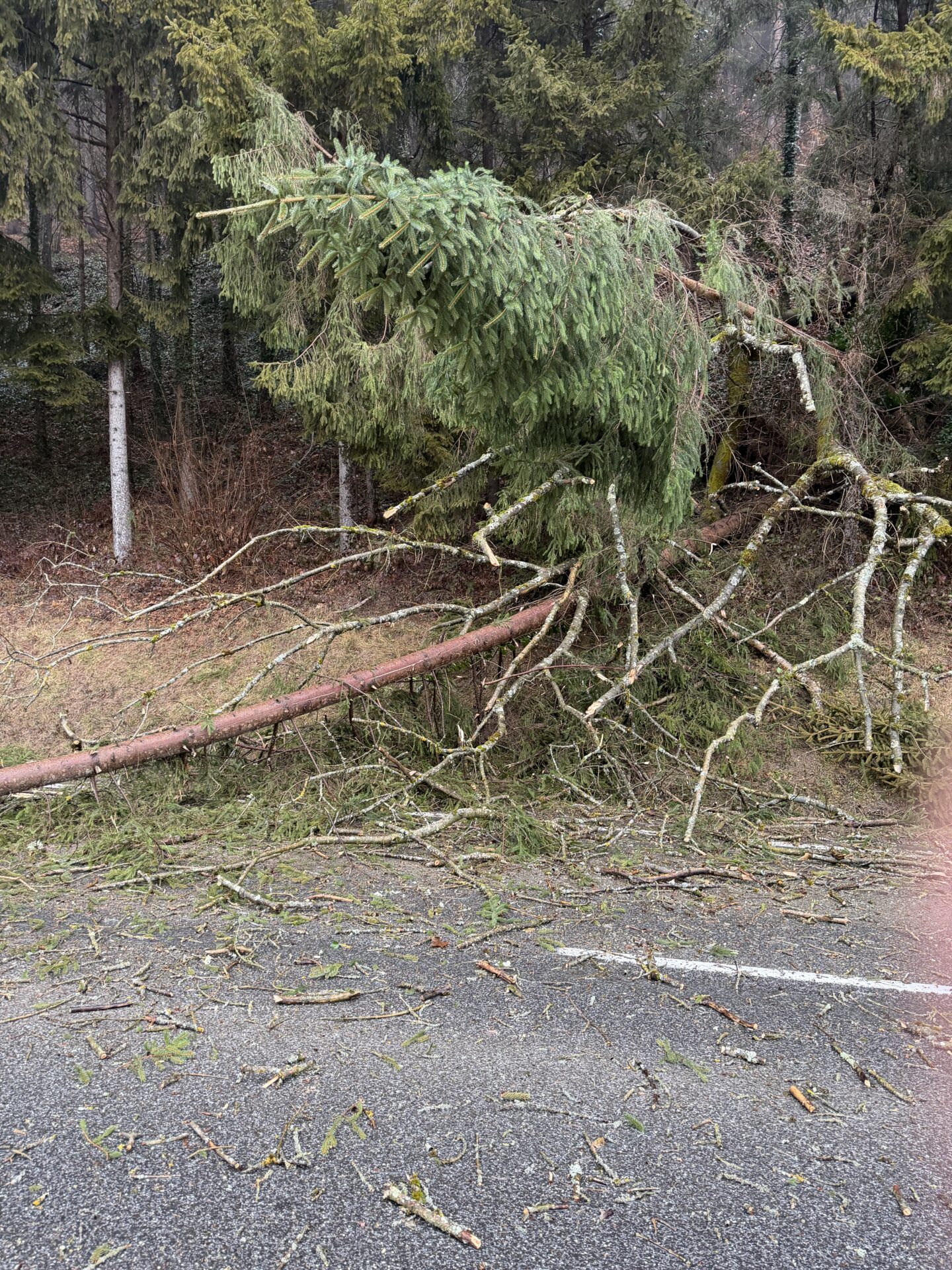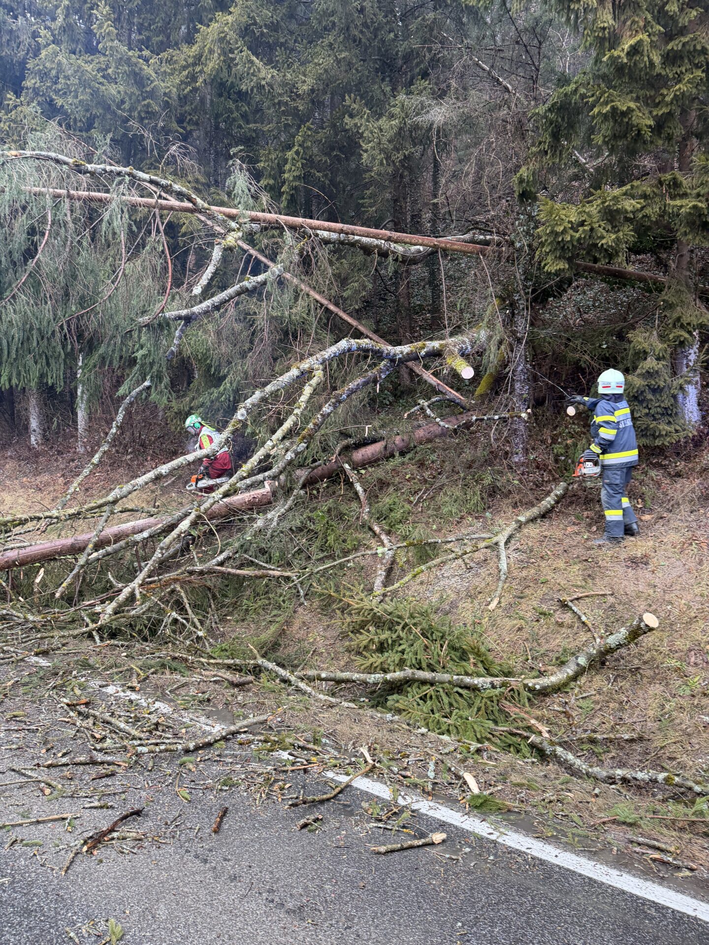 Am 29.01.2026 wurden wir mittels stiller Alarmierung von der Landesleitstelle Steiermark zu mehreren umgestürzten Bäumen auf der L416 im Bereich Bergmannwirt alarmiert.