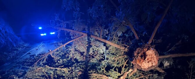 Am 22.11.2025 wurden wir um 05:08 Uhr zu einer Baumbergung auf die L427 auf Höhe der Volksschule Festenburg gerufen. Wir rückten mit MZF-A, RLF-A, LKW-A und insgesamt 21 Personen aus. Bereits auf der Anfahrt war der Weg versperrt, da im Bereich Hofer Graben auf der Gemeindestraße in Richtung Bruck an der Lafnitz mehrere Bäume über [...]
