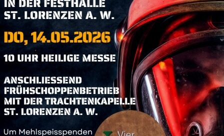 Einladung zum Floriani-Frühschoppen Die Freiwillige Feuerwehr lädt herzlich zum Floriani-Frühschoppen ein: 📅 Donnerstag, 14. Mai 2026📍 Festhalle am Sportplatz, St. Lorenzen am Wechsel Der Festtag beginnt mit einer feierlichen⛪ Heiligen Messe um 10:00 Uhr,gestaltet von Hr. Pfarrer Gerhard Rechberger und der Trachtenkapelle St. Lorenzen am Wechsel. Im Anschluss laden wir zum gemütlichen🍻 Frühschoppen mit der [...]